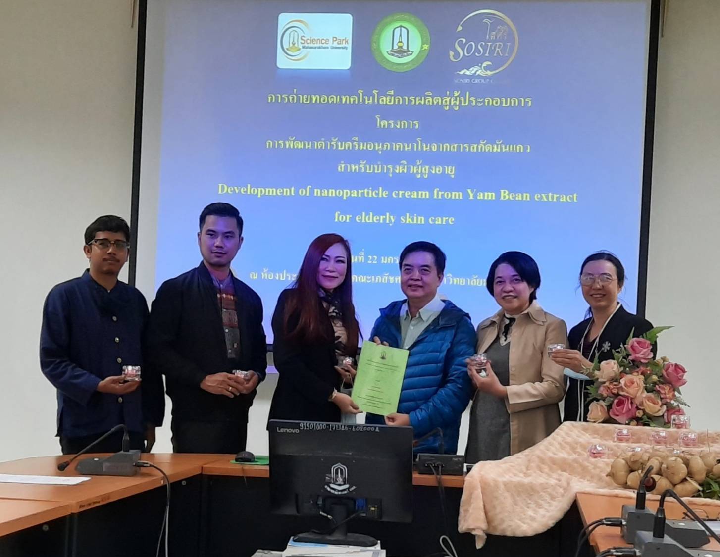 รับการถ่ายทอดเทคโนโลยีการผลิต ครีมอนุภาคนาโนจากสารสกัดมันแกว จากคณะผู้วิจัยของมห ...
